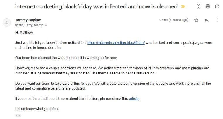 Thanks for helping me regain my sanity after my site went down! You were methodical and got the job done.